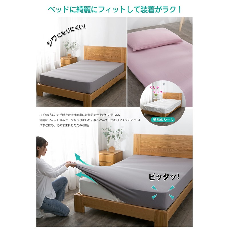 - Stretchy and Easy to Put On and Take Off: 1. This sheet’s stretch material has excellent elasticity and stretches both lengthwise and widthwise, so putting it on is easy and hassle-free.2. This fitted sheet is wrinkle-resistant and fits neatly without needing to be ironed.3. This fitted sheet creates a snug fit on mattresses of various sizes and types, including bed mattresses, Japanese-style futon floor mattresses, and tri-fold mattresses.It can be folded up as-is, reducing the hassle of housework