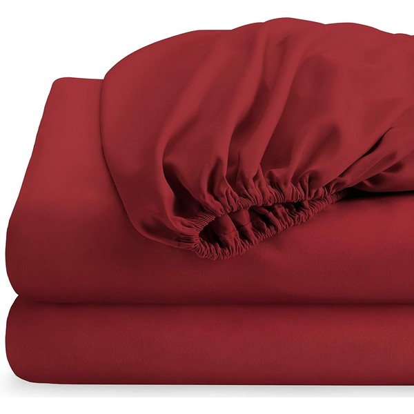 Fitted Sheet Twin-XL Size - Burgundy Fitted Bottom Sheet Only -100% Egyptian Cotton Hotel Quality Top Sheet - Deep Pocket up to 15 inches, Super Soft Cotton Bedsheets (Burgundy Solid, Twin-XL)