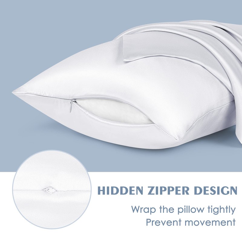 Fittia Satin Pillow Cases 2 Pack Queen, Satin Pillowcase for Hair and Skin with Zipper, Smoother & Softer Than Silk for Summer Cooling, White, 20''x30''