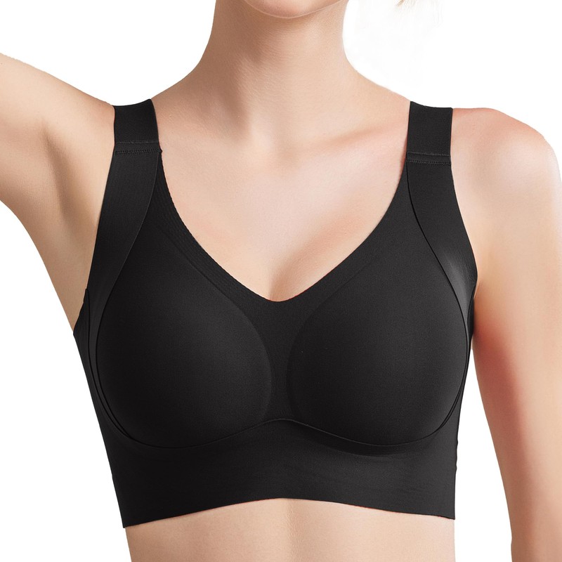 Fittingirls Womens Seamless Wireless Supportive Bra Push up Comfort Soft no Underwire Full Coverage T-Shirt Bra Black
