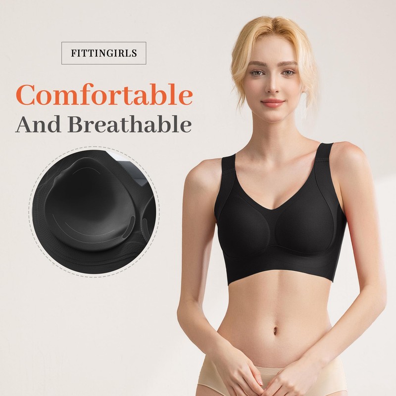 - 【V-neck Wireless Bras Full Overage】This V-neck seamless bra from Fittinglils has a more simple and basic style, so it fits a wider range of sizes and styles. The just-right neckline height makes your sexy cleavage visible, and you can have charming and full curves under the bra's molding. The wirefree bra's wider side circumference hugs your chest and wraps around your secondary breasts, giving your body curves a smooth appearance within your clothes, while ensuring comfort and 0 constriction!