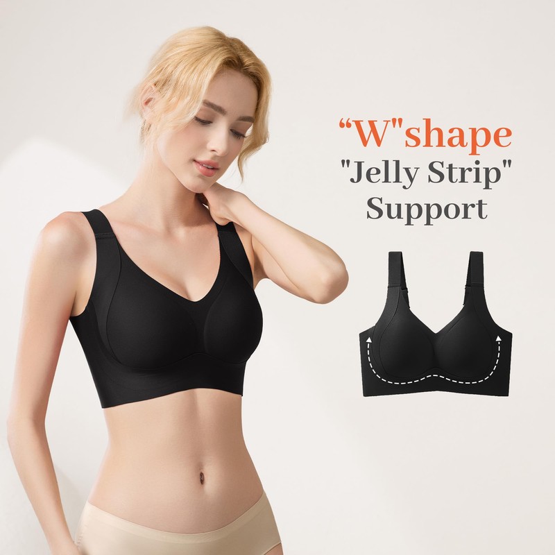 - 【Bras for Women with Support and Lift】This no wire bra uses ”W“ jelly strip to replace the traditional steel ring, so you no longer feel annoyed by the stabbing out of the steel ring hurt. All around the perimeter of the multiple narrow jelly gel more soft to avoid the whole wide jelly gel is too hard to pinch uncomfortable. In addition, the teardrop 3D molded cups and elastic fabric add to the supportive nature of this bra, so this is a push up bra that is both comfortable and supportive.