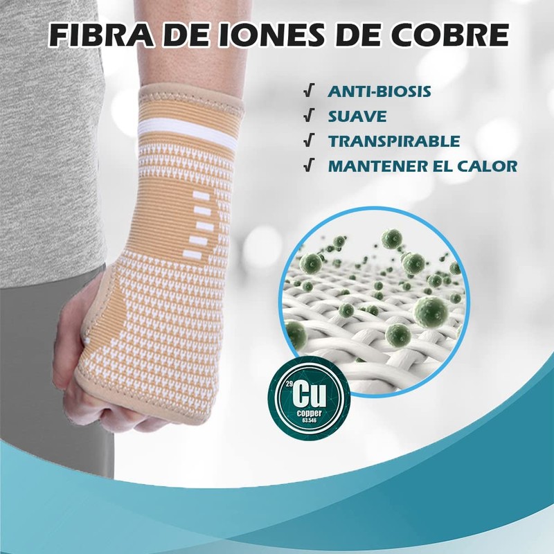 FITTOO Muñequera de Compresión Soporte de Mano para Tendinitis Artritis Túnel Carpiano Esguince para Hombre Mujere (Large, Beige Claro)
