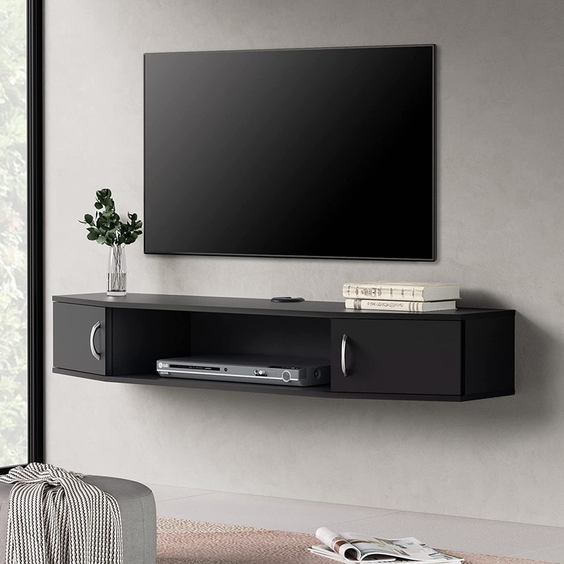 - 【Mutil Storage & Hidden Cabinet 】: Featuring storage spaces, this wall mounted tv shelf is perfect for holding TV components, gaming accessory, books, decors. Hidden doors on both sides can skillfully keep privacy, center door the clutter for game consoles, stereo, DVD player, CDs.