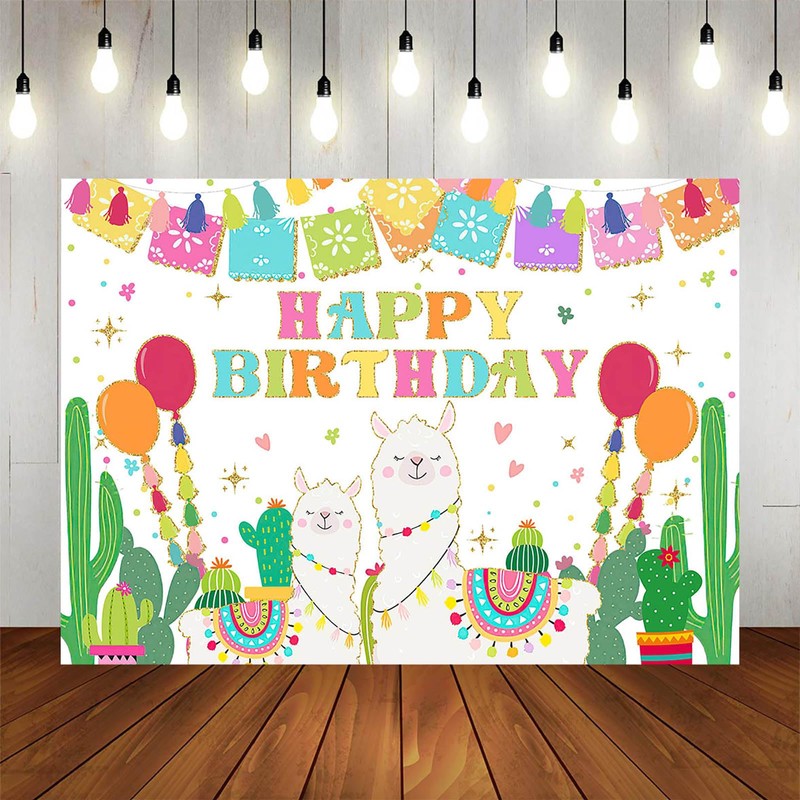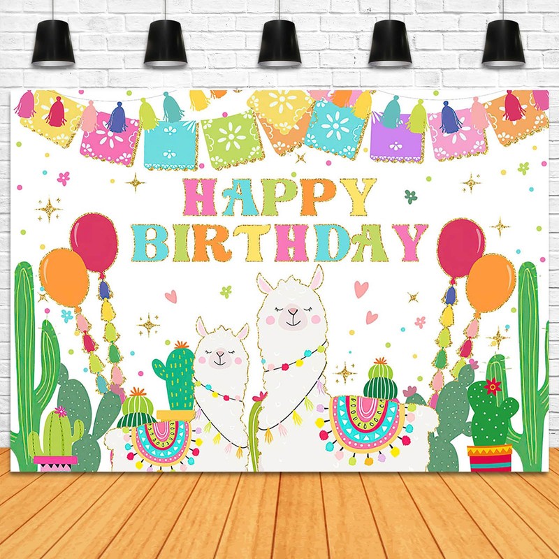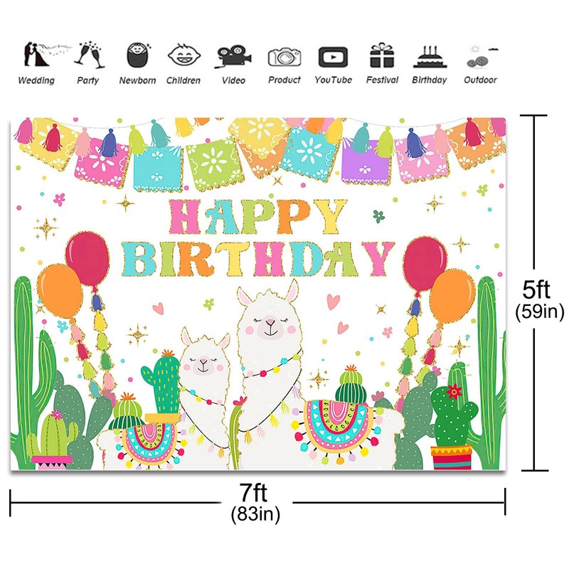 Fitumiw Llama Birthday Backdrop 7x5ft Cactus Mexican Fiesta Happy Birthday Background Party Decorations A Whole Llama Fun Alpaca Banner Photo Booth Props