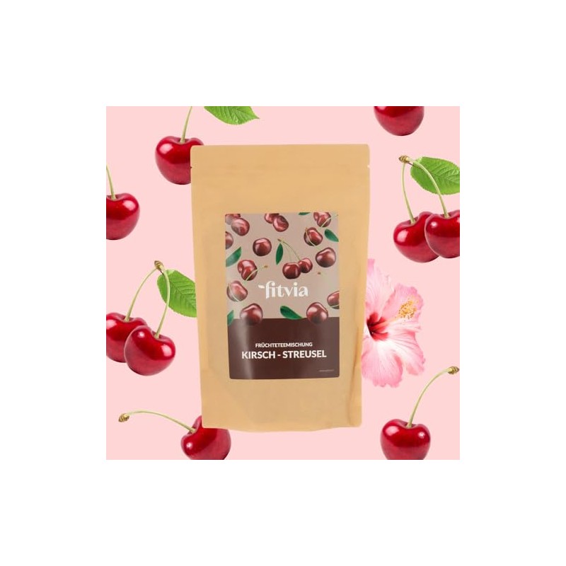 fitvia Fruit Tea - 100 g Loose Tea, Up to 34 Cups Full of Enjoyment (Cherry)