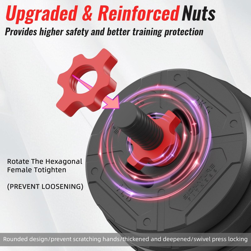 - Multifunctional - Provides multiple weight options and quick transitions between dumbbells, barbells and kettlebells. Easy to disassemble and assemble. No rust, no damage to the floor