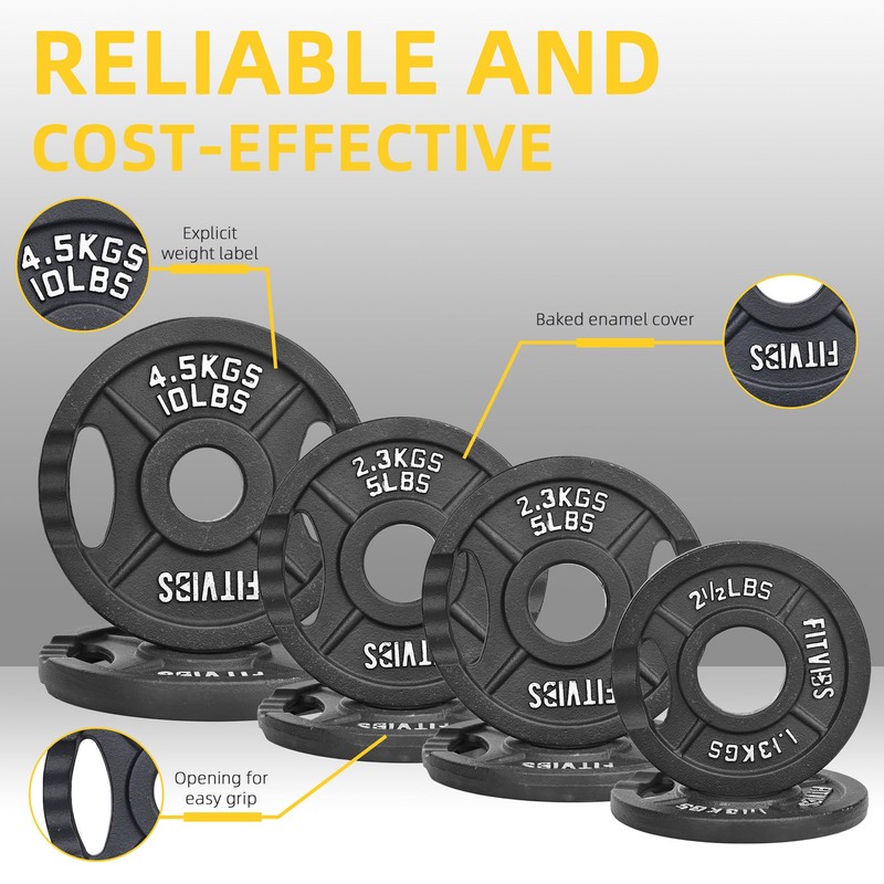 Fitvids Olympic Cast Iron 2-Inch Weight Plate for Strength Training & Weightlifting, Multiple Weights Available, 45LB Set With Safety Clips