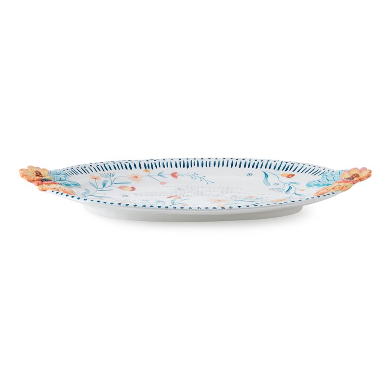 - CHARMING PLATTER: a lively addition to your dining table with convenient carrying handles, this hand painted platter is perfect for serving appetizers, desserts, or even the main course