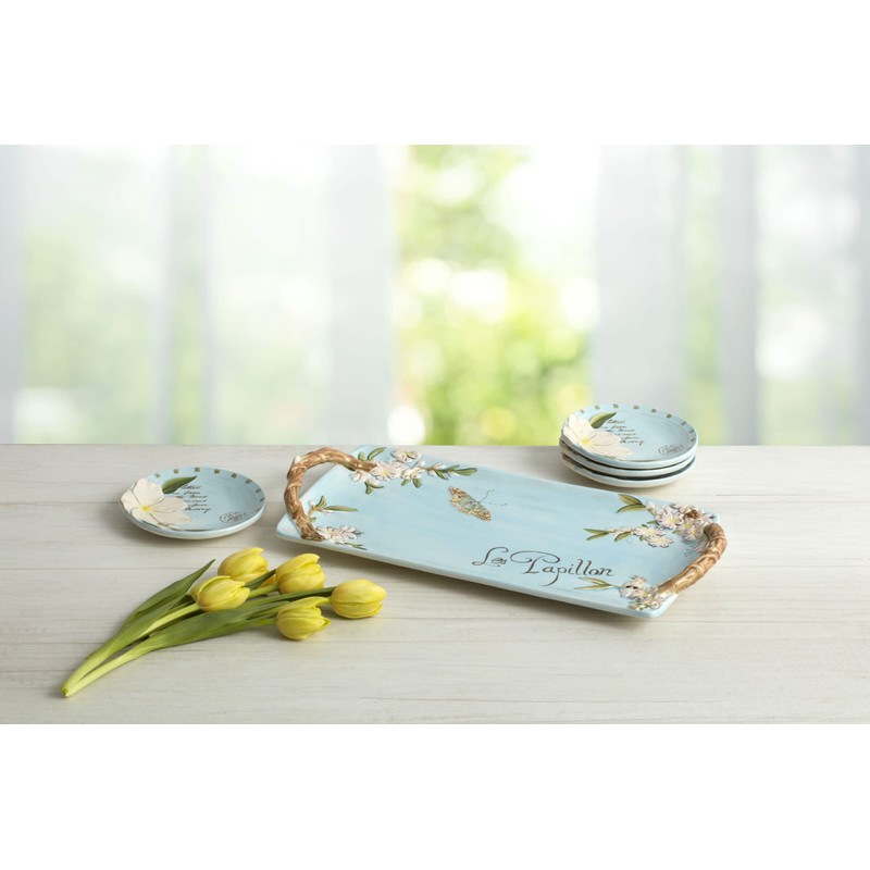 - CHARMING TRAY: featuring soft shades of blues and inspired by nature’s garden gifts of flowers and butterflies with old Europe handwritings giving a feeling of spring