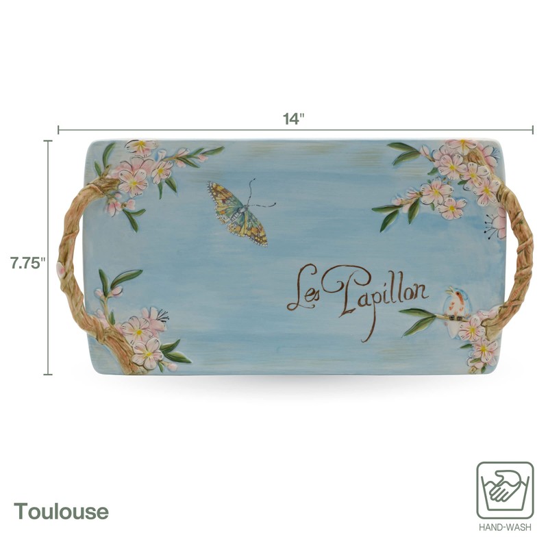 Fitz & Floyd Fitz and Floyd Toulouse Handled Serving Tray, 14 Inch, Blue