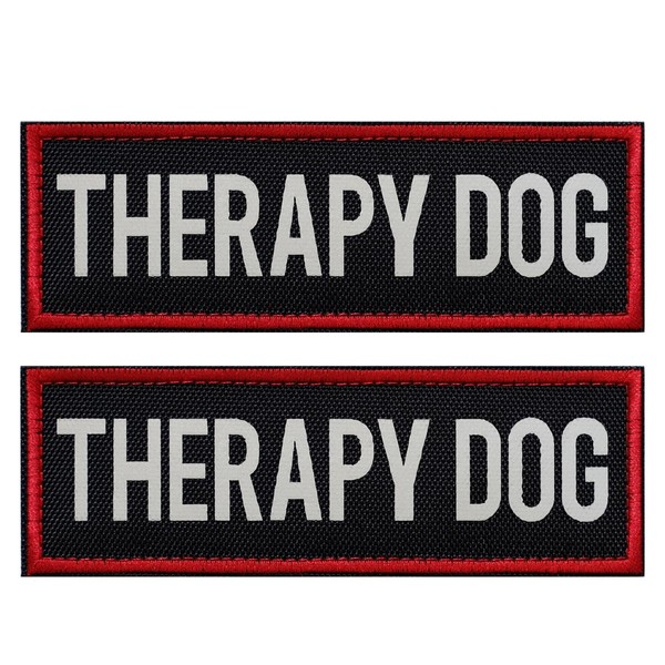 FITZNORA 2 Pcs Reflective Therapy Dog Patch Set with Hook and Loop Fastener, Embroidered Border with Printed Letters Patch for Dog Vest Harness Collar (6 x 2 inches)