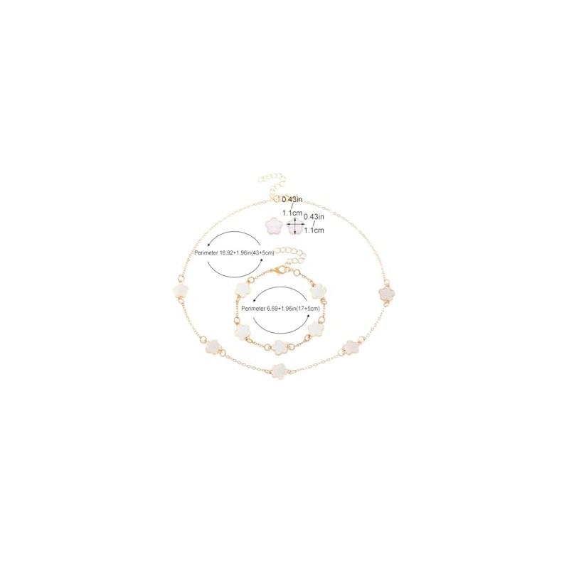 Five Leaf Lucky Clover Jewelry Sets for Women,Dainty Five Leaf Clover Flower Bracelets Five Leaf Lucky Earrings Choker Necklace Trendy Lucky Valentine's Day Jewelry Set (White)