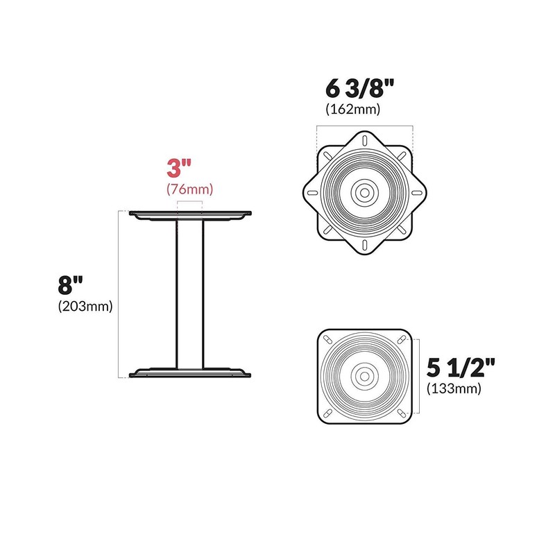 Five Oceans 8 in (203mm) Marine Boat Seat Fixed Pedestal with 360 Degree Swivel, EDC Steel with Black Coating Finish, for All Standard Boating Seats, FO-2896