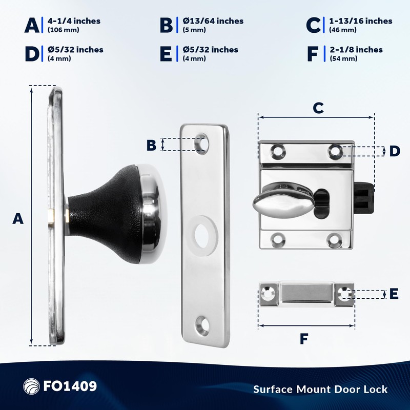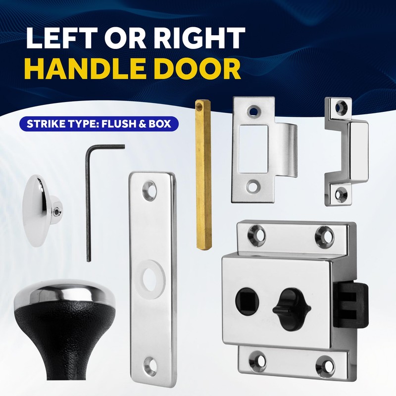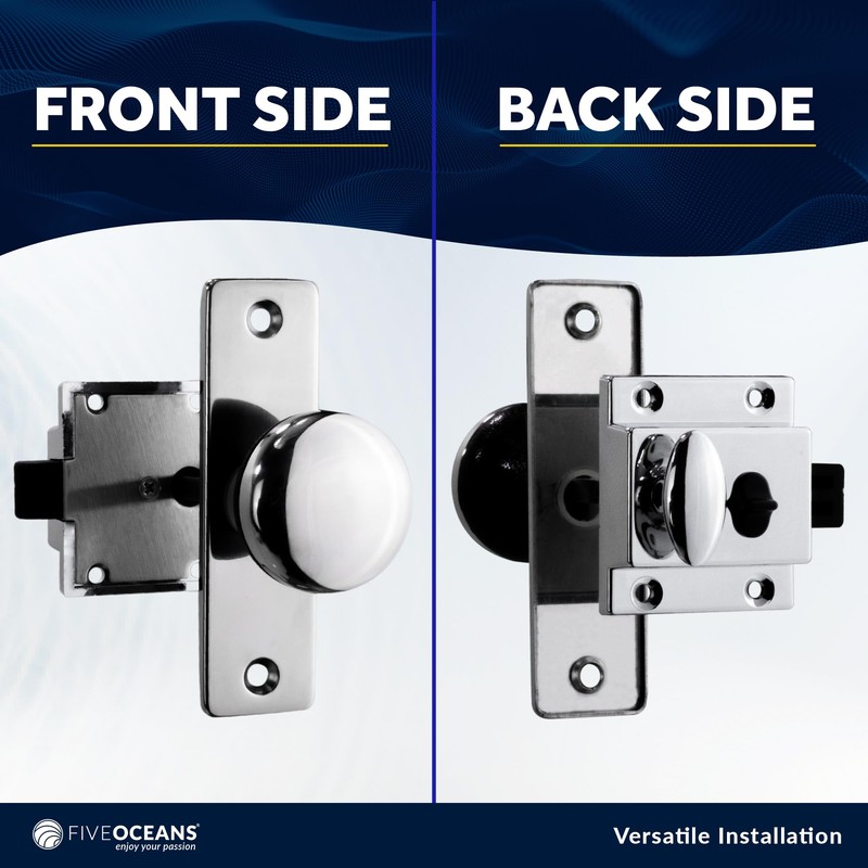 Five Oceans Boat Door Lock, Marine Door Latch, Door Knob Chrome-Plated Finish, Surface Mount, for RV Camper Boat Trailer Truks - FO1409