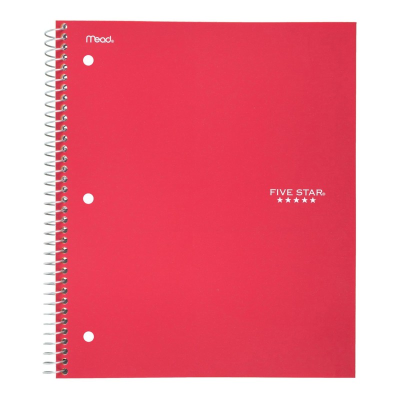 Five Star Wirebound 1-subject Notebook, 11 X 8.5 Inches, 100 Sheets/200 Pages, College Ruled, Red (72053)