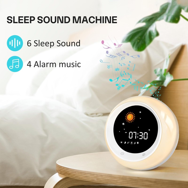 • 【Night Lights & Sleep Sound Machine】 Our kids clock is designed with 9 color lights and 3 level warm lights, which can accompany your kids as night lights, provides a comfortable bedtime environment. This alarm clock for kids provides 6 kinds of sleep sounds, let your kids sleep in a good mood.
