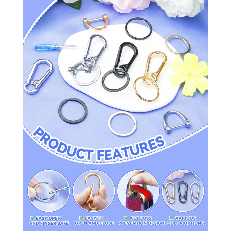 - Complete Kit for Versatile Use: This Keychain Rings Kit includes three keychain clips, three thin key rings, three thick key rings, three D-shaped key rings, and a mini screwdriver. Perfect for organizing key rings for car keys.