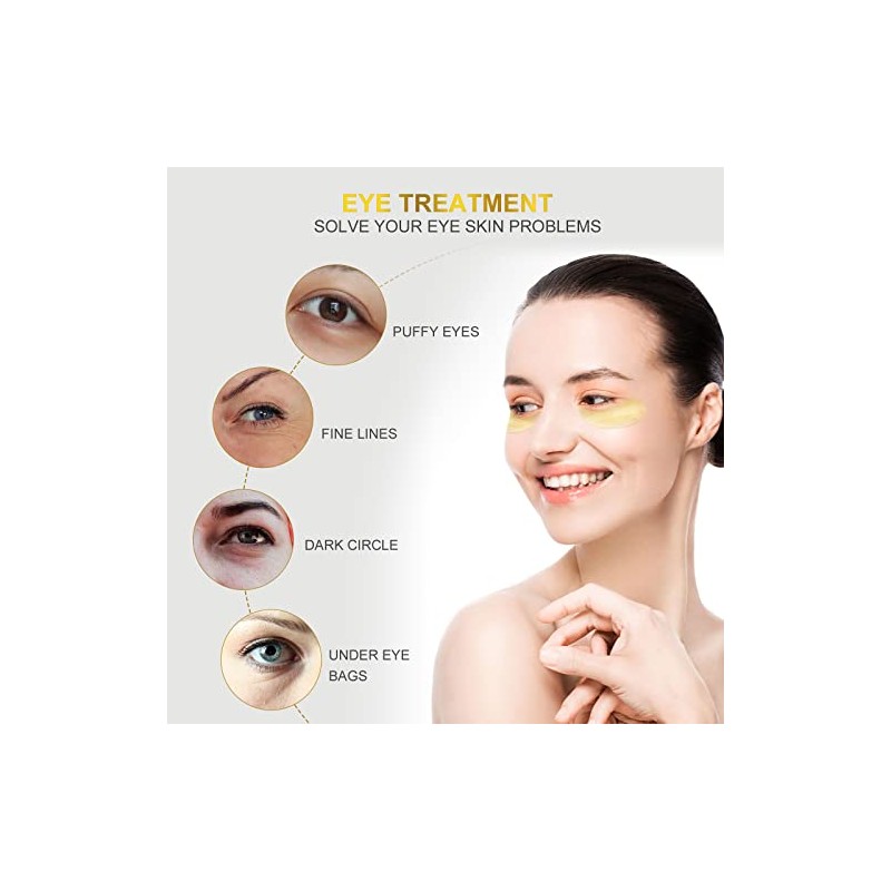 - Easy Using & Fit All Skin: With 24K gold under eye mask, you don't have to worry about making time or setting aside a lofty budget. Easy to apply, delicate skin care in just 20 minutes. Improves the dark circles and tired eye area making it radiant and healthy