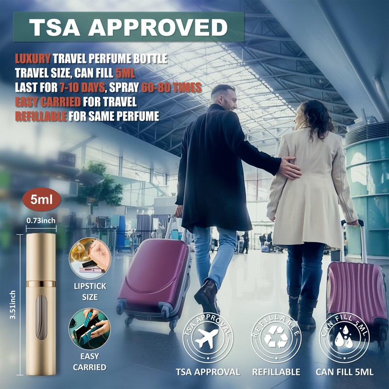 • 【TRAVEL MINI SIZE】- 5ml portable atomizer, like lipstick size, lightweight and durable aluminum material makes it ideal for placing in your pocket or handbag, travel must haves, TSA approved for carry on baggage, let you always be surrounded by fragrance.