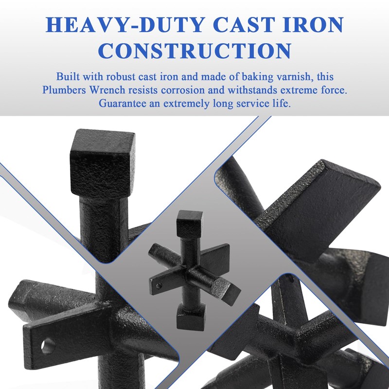 - 【Heavy-Duty Cast Iron Construction】Built with robust cast iron and made of baking varnish, this Plumbers Wrench resists corrosion and withstands extreme force. Designed for commercial/residential use, it’s a durable replacement for Pasco J40042, perfect for professionals tackling tough cleanout caps.