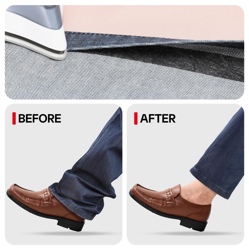 - 【Easy to Use】Say goodbye to lengthy sewing sessions or expensive tailoring fees. No need to sew, just put the appropriate hemming tape for trousers between the fabric and iron it back and forth 10-15 times (Recommended between 140-150°C). Whether you're a beginner or an experienced DIY enthusiast, our iron-on hemming web tape provides a quick and efficient solution for all your bonding and fixing needs.