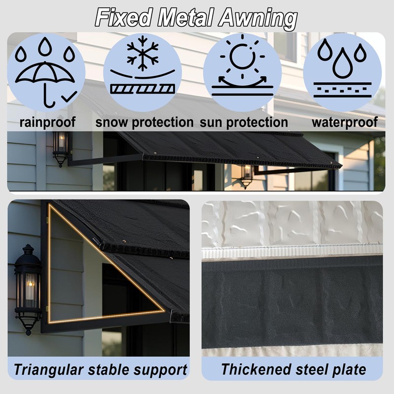 - Suitable for a Variety of Uses: Fixed metal awnings provide rain, sun, snow, and weather protection, aspiration for bedroom windows, patios, balconies, doors, restaurants, offices, cafes, and more, all-season performance