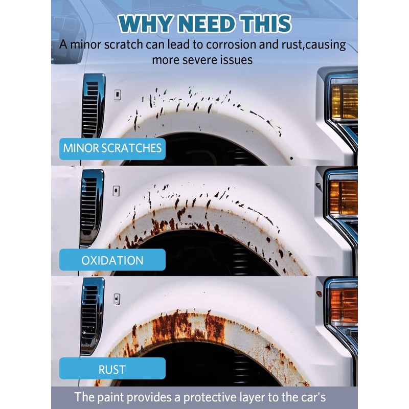 Instructions:Step 1: Shake the bottle thoroughly before use. Clean the scratched area. Choose the paint pen tip or brush depending on the type of scratch.