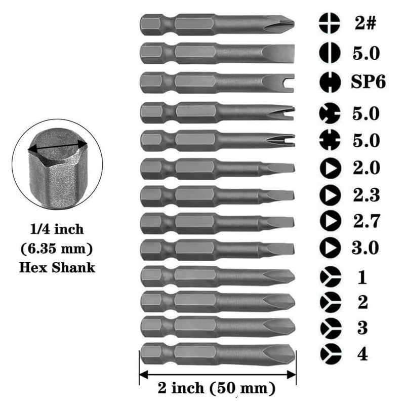 Fixinus 13-Piece Specially Shaped Screwdriver Set, 1/4 Inch Hex Magnetic Steel Drill Bits, Phillips U-shaped Y-type Triangle Inner Cross Three Point Screwdriver Bits, 50 mm Length