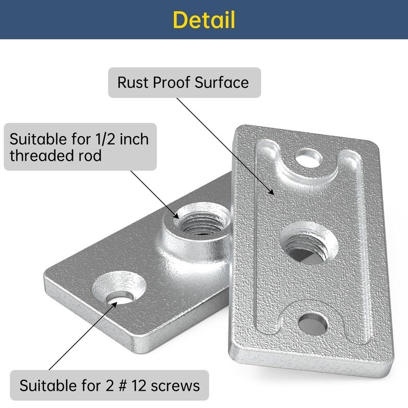 - 【Product Size】2.73" L x 1.25" W, Compatible with 1/2" fully threaded rod use, 2 screw holes of # 12