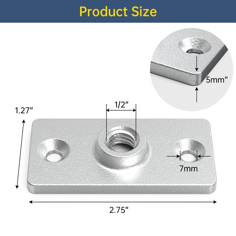 【Product Size】2.73" L x 1.25" W, Compatible with 1/2" fully threaded rod use, 2 screw holes of # 12