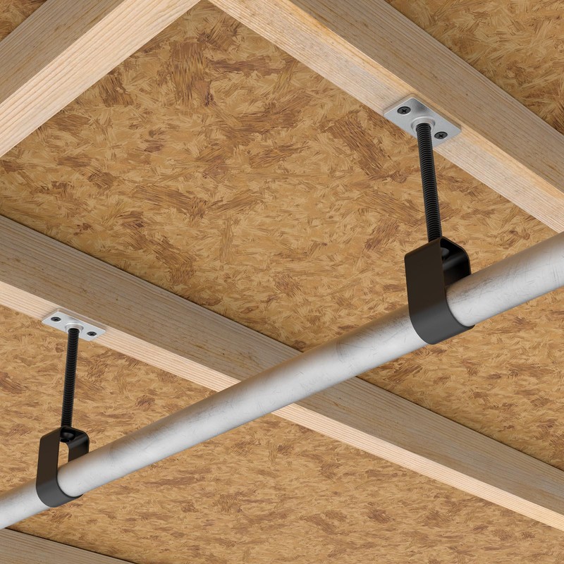 【Function】Fixirons 1/2 in Ceiling Flange Hanger design for supporting 1/2 in Diameter Threaded Rods in Plumbing Application. With a 1/2" fully threaded rod to connect open ring hangers