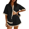 Fixmatti Shorts Sets Women 2 Piece Outfits Button Up Blouse Matching Shorts Set Casual Sweatsuits Black M