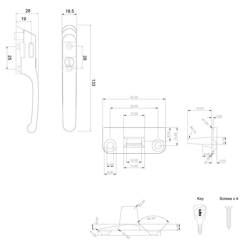 - Screws and Keys - Supplied with colour coordinated screws for perfectly matching hardware. When looking for replacement window handles, design is as important as performance. Our mounted window fasteners are supplied with same colour screws to create a flawless final product.