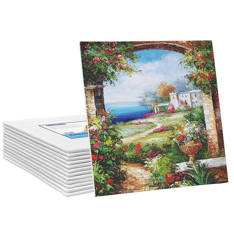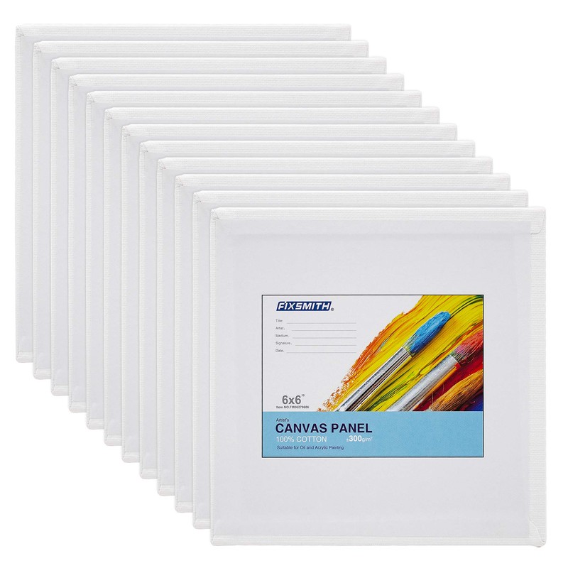 FIXSMITH Canvases for Painting -6x6 inch Painting Canvas Boards, Super Value 12 Pack,100% Cotton,Back to School,Primed,Acid Free,Suitable for Professionals,Artists,Beginners,Hobby Painters,Students & Kids