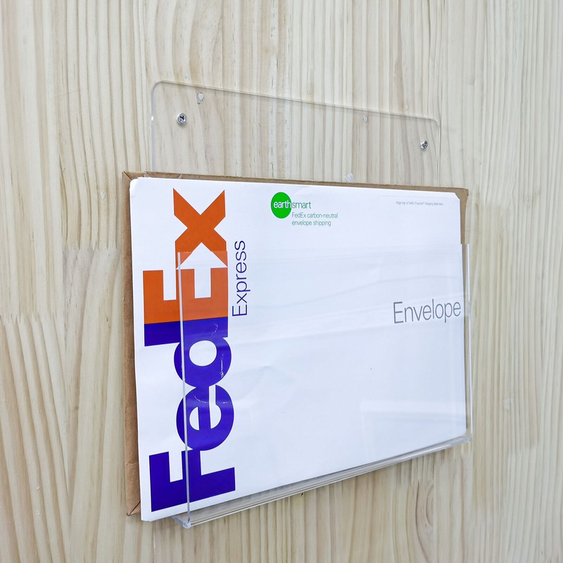 [Wall Mount Clear Acrylic File Holder] This clear acrylic file holder is designed to hang on the wall and keep your letter size documents organized. Ideal for storing documents, catalogs, files, folders, papers, and magazines and light weight kitchen items such as a cutting board. The clear construction provides easy viewing of documents. Use these file organizers in your office, medical facility, hospital, school, bank, at home and much more. The shipping box measures 15.6 inches in width, 14.2 inches in depth, 13.8 inches in height with a gross weight of 16.9 pounds.