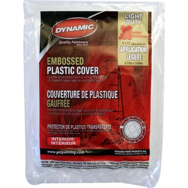 FixtureDisplays Dynamic 00380 9' x 12' .3mil Flat Packed Embossed Clear Plastic Drop Cloth