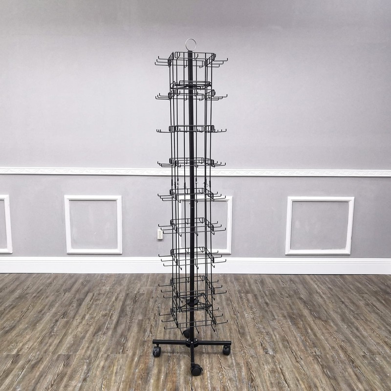- The key chain display is made of metal wire with black powder coated finish. Floor standing placement style. Easy to rotate and show your product from all angles.