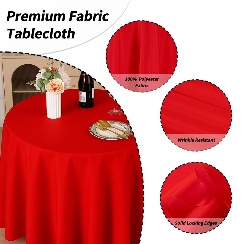 - HIGH-QUALITY FABRIC - The red tablecloth is made of 100% polyester fabric, easier to clean and more sustained compared to most cotton materials, providing more convenience for your use and cleaning. It not only protects the table from dust and scratches, but also has the effect of decorating the tabletop.
