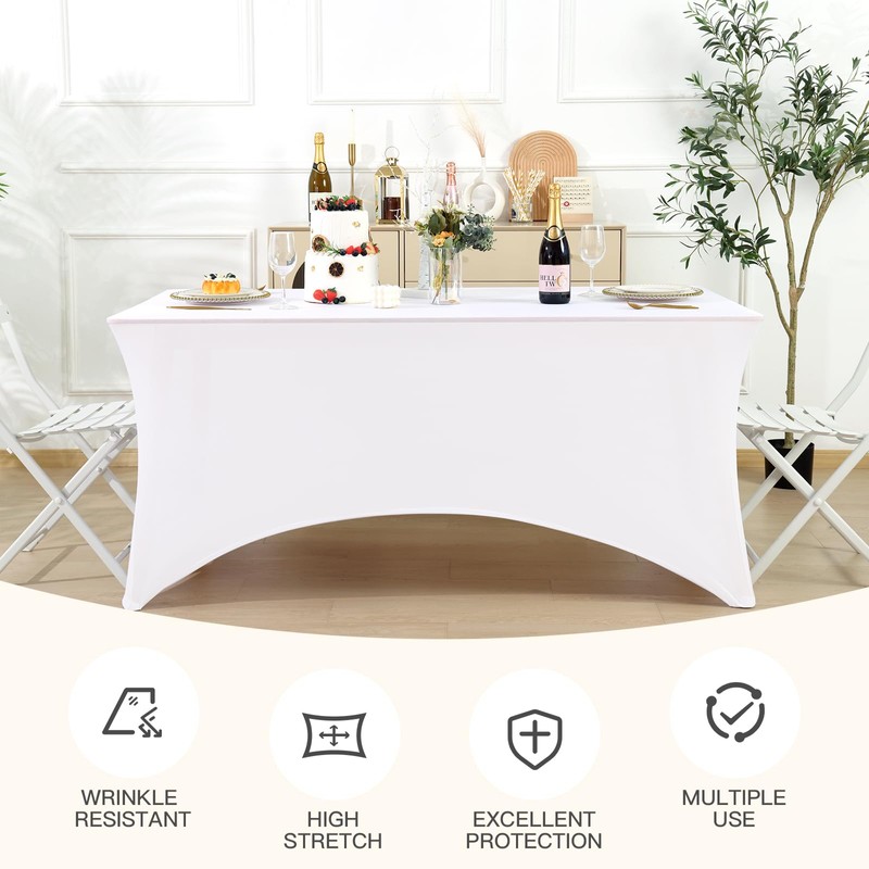 - Sustained & Stretchable: Our spandex stretchable tablecloth is stretchy, wrinkle resistant and provides excellent protection for table cleanliness. The lightweight rectangle tablecloth and sustained fabric make it easy to carry and set up, requires no ironing, and can be washed multiple times, features that make them perfect for indoor and outdoor events.