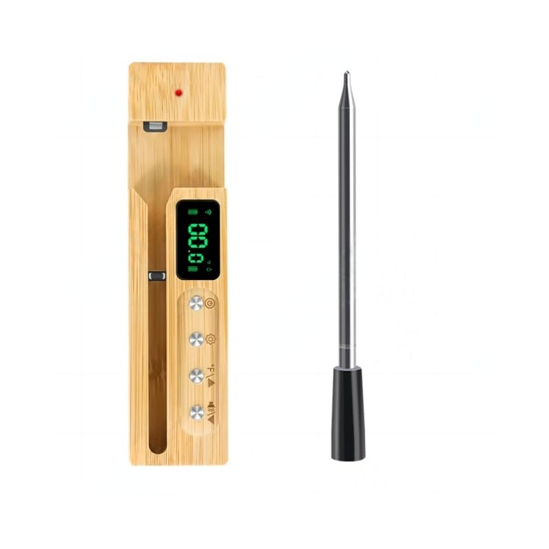 - Smart wireless connection: the probe and host of this thermometer are designed with intelligent wireless technology that synchronise seamlessly with mobile applications. Benefit from the advanced 5.2 Bluetooth technology. With a range of 150 metres and the Bluetooth function, it is wireless. Wireless meat thermometer frees you from annoying tangled cables.