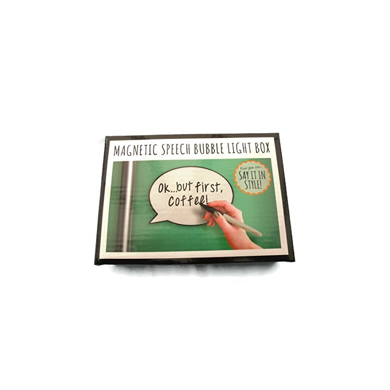 - Strong magnets stick this illuminated speech bubble to any metal surface