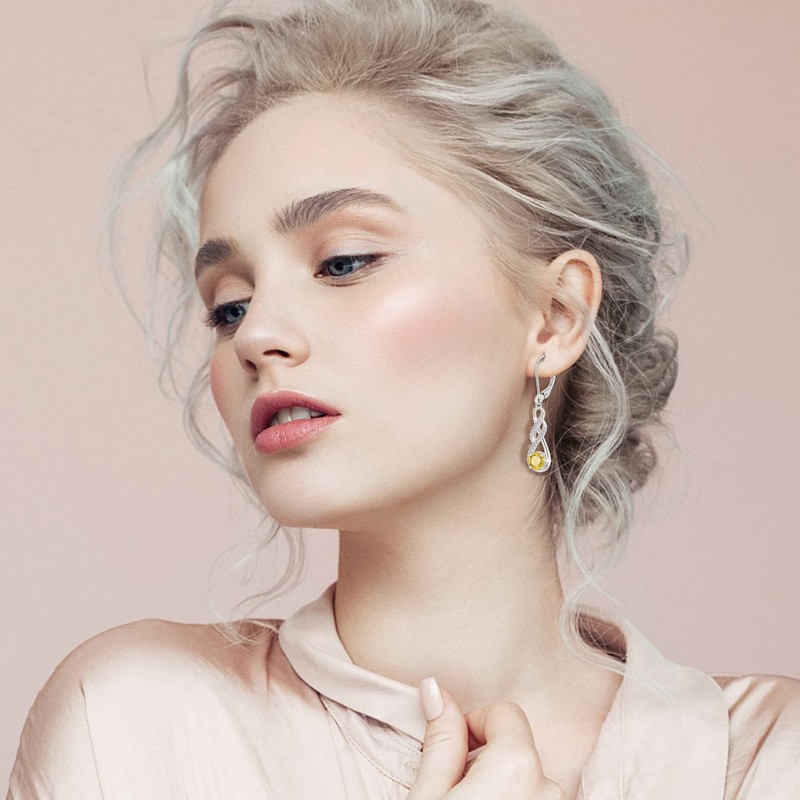 FJ Sterling Silver Infinity Drop Earrings Twisted Dangle Earrings with November Citrine Birthstone for Women