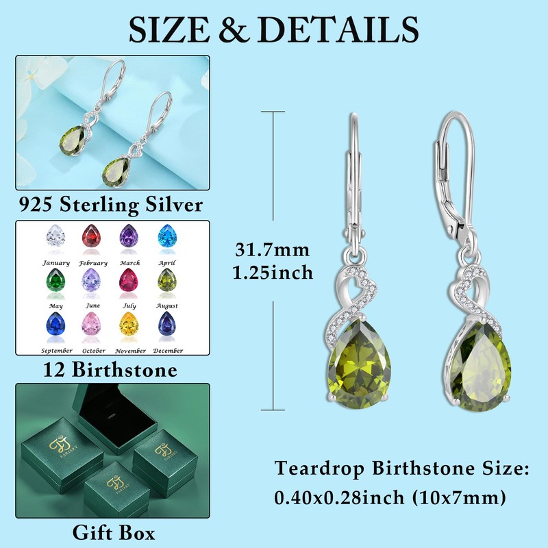 FJ Teardrop Dangle Earrings for Women 925 Sterling Silver Peridot Drop Earrings Pear Leverback Earrings August Birthstone Jewellery Gifts for Her