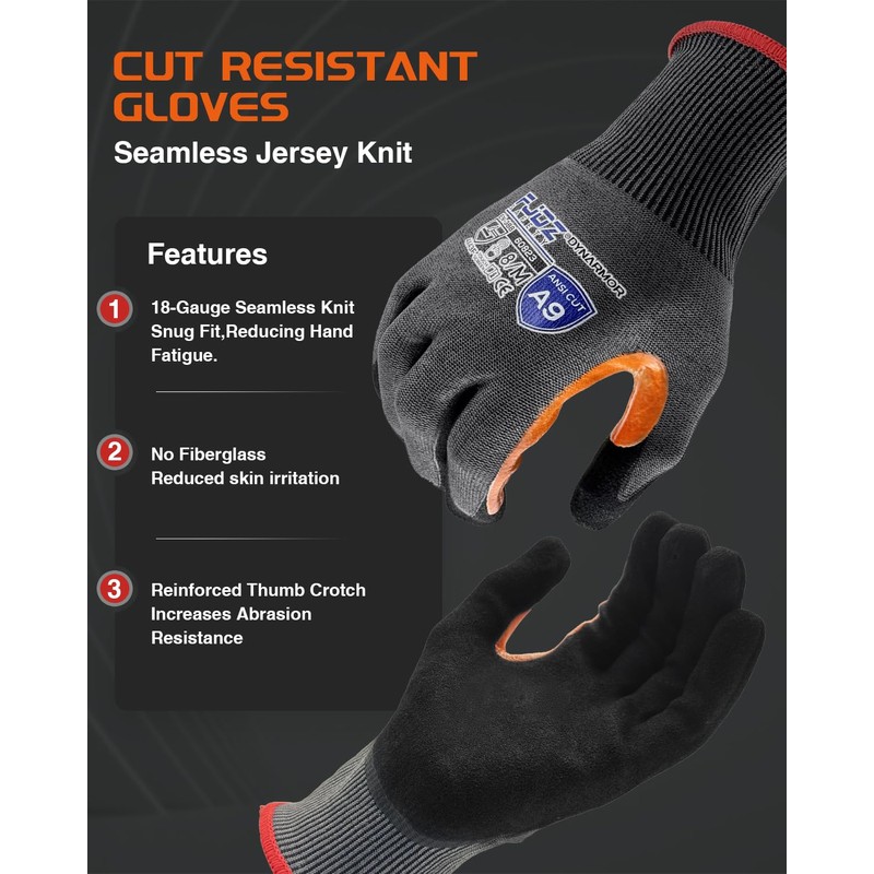 FJDZ SAFETY ANSI A9 Cut Resistant Work Gloves,18-gauge Lightweight Seamless Knit Shell Sandy Nitrile Coating Touchscreen Cutting Glove for Woodwork, Construction,Fishing(1 Pair/X-Largel