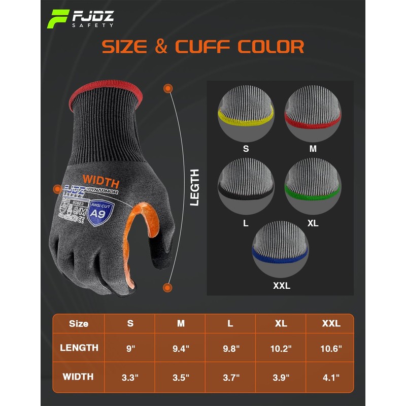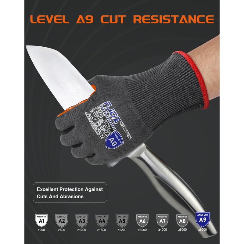 - ANSI A9 Cut Level Protection: Provides the highest level of cut resistance, offering superior protection against extreme cut hazards, ideal for industries like heavy-duty metalworking, glass handling, and other high-risk environments.