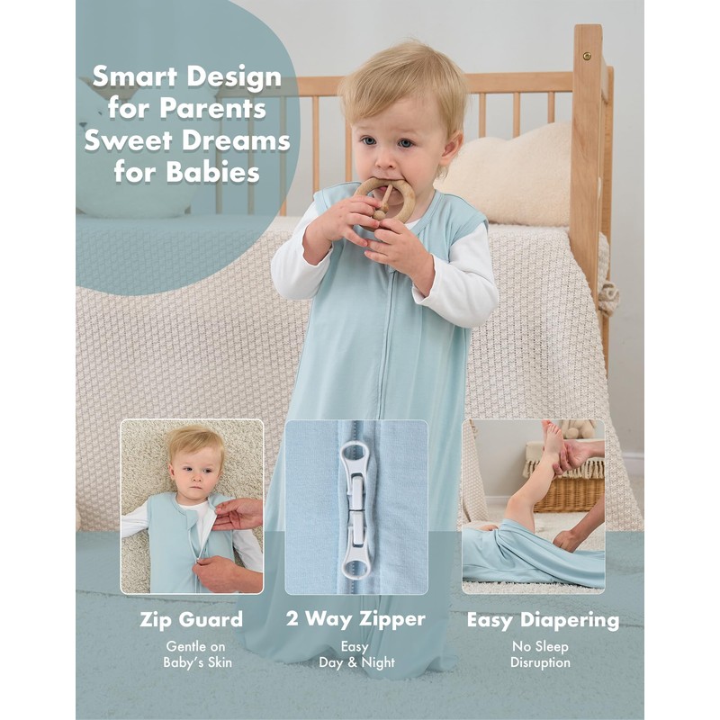 • EASY 2-WAY ZIPPER FOR DIAPER CHANGES – The double zipper opens from both the top and bottom, making nighttime diaper changes quick and easy. No need to fully remove the sleep sack. Keeps your baby cozy and secure without loose blankets.