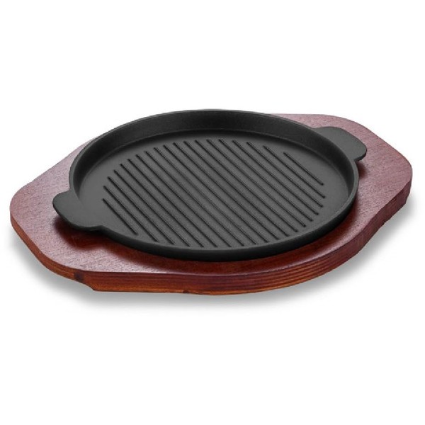 FJPTFENG Steak Pan Sizzle Griddle, Cast Iron Steak Plate, Round striped Steak plate with two ears (9 inch)