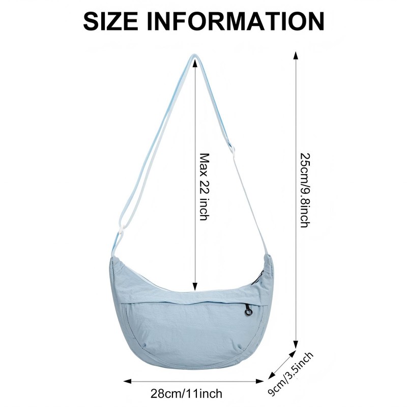 Fjquamitix Crescent Bag for Women Men Crossbody Nylon Dumpling Bag with Adjustable Strap, Half Moon Sling Shoulder Handbag for Travel Casual Eveyday (Blue)