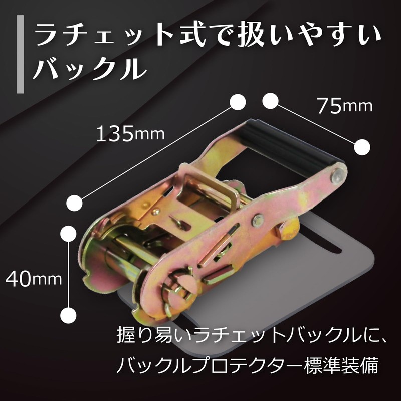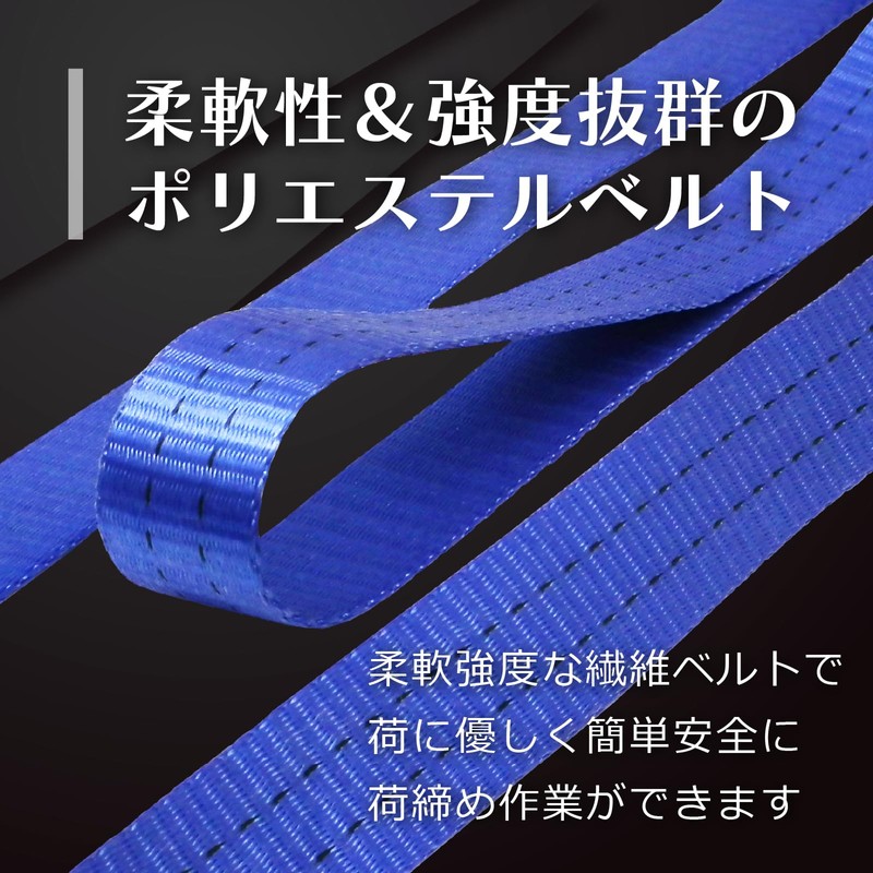 - Round lashing belt with ratchet buckle, easy to grip buckle and flexible fiber belt for easy and safe loading